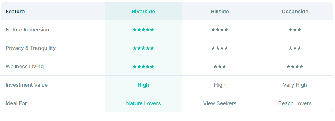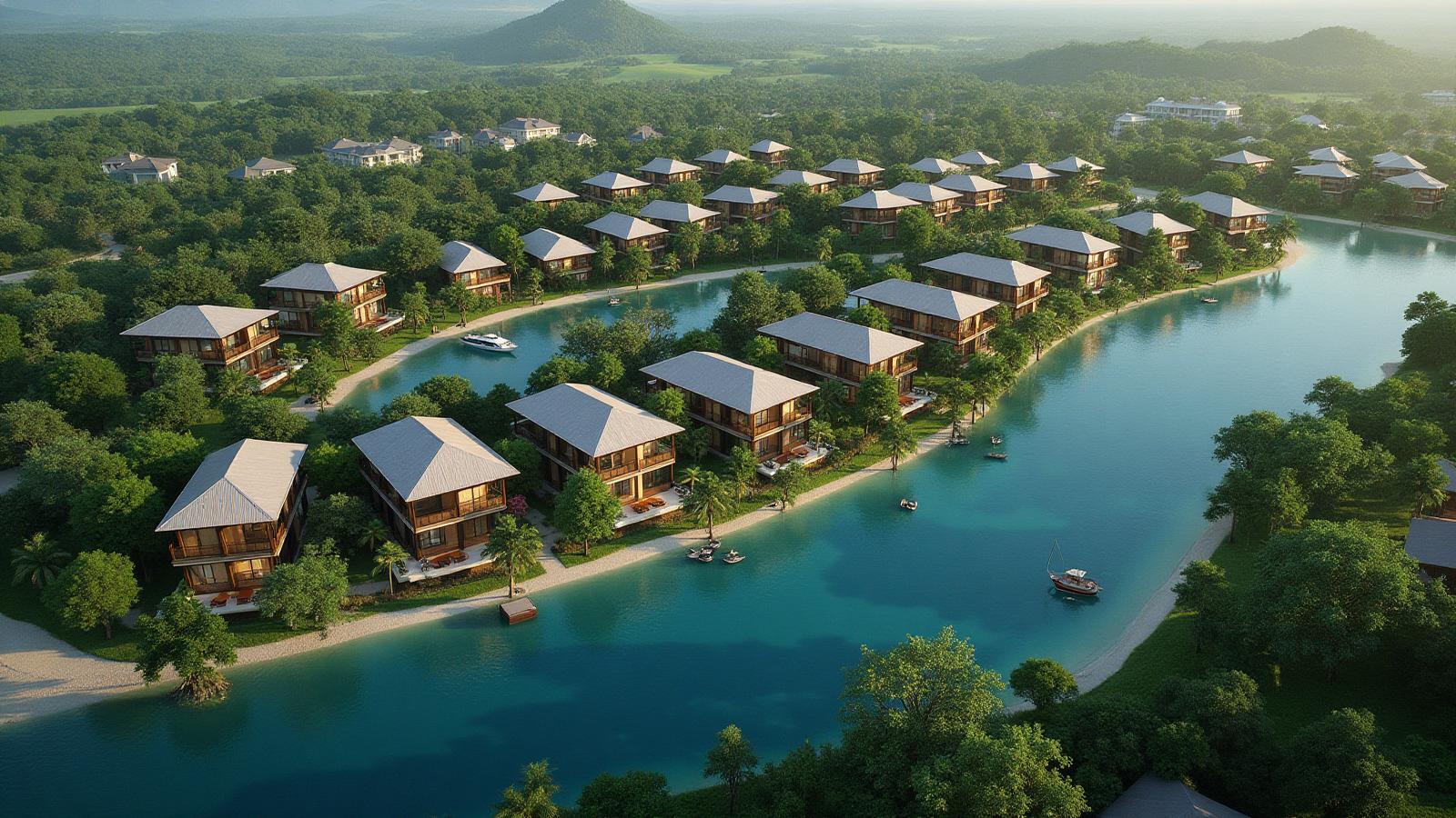 Exclusive villas along a serene tropical river, offering privacy, tranquility, and wellness-driven living immersed in nature.