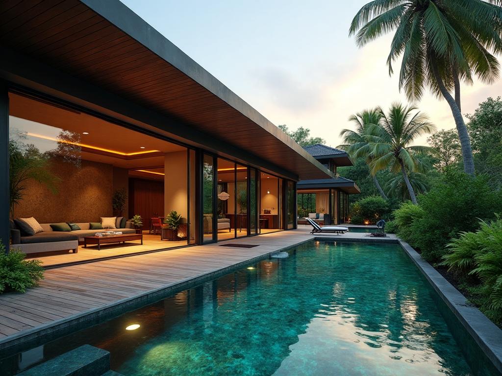 Perfect balance of nature connection with modern architecture. Large infinity pool, wooden decking, and lush tropical garden integration.